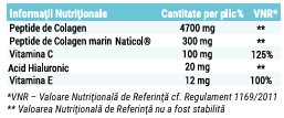 Colagenul hidrolizat, sub forma de peptide, este usor absorbit in organism si furnizeaza o gama variata de aminoacizi. Acesta reprezinta o componenta importanta a tesutului conjunctiv, contribuind la mentinerea fermitatii si elasticitatii pielii.