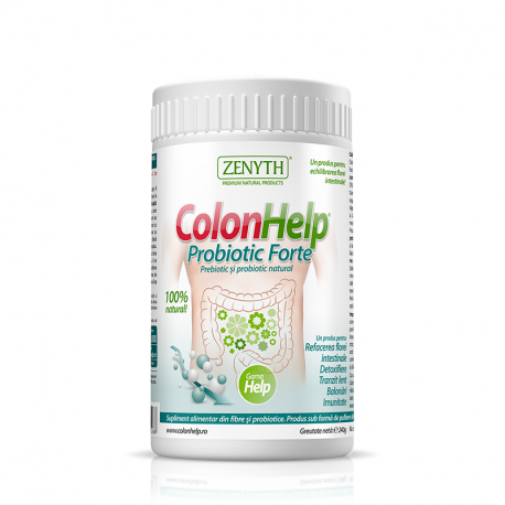 ColonHelp Probiotic Forte este un supliment alimentar 100% natural, o asociere inedita de prebiotice si probiotice. Actiunii detoxifiante a fibrelor de in si psyllium din ColonHelp clasic i se adauga refacerea florei intestinale atat prin componenta probiotica adaugata, cat si prin stimularea productiei interne de bacterii sanogene din colon (componenta prebiotica – inulina).