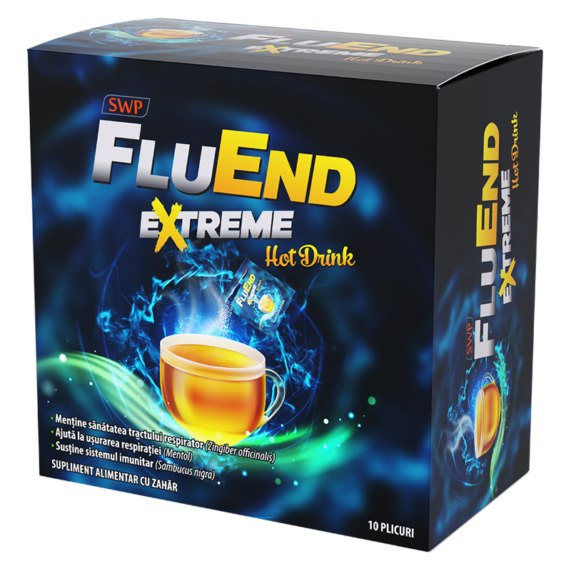 Fluend Extreme Hot Drink, 10 plicuri, Sun Wave Pharma - Catena