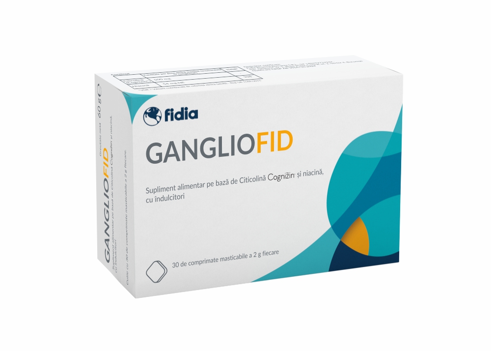 GanglioFid este un supliment alimentar pe baza de Citicolina (Cognizin®) si niacina, recomandat a se utiliza in caz de nevoie crescuta sau de aport redus prin alimentatie a substantelor nutritive care intra in alcatuirea sa..