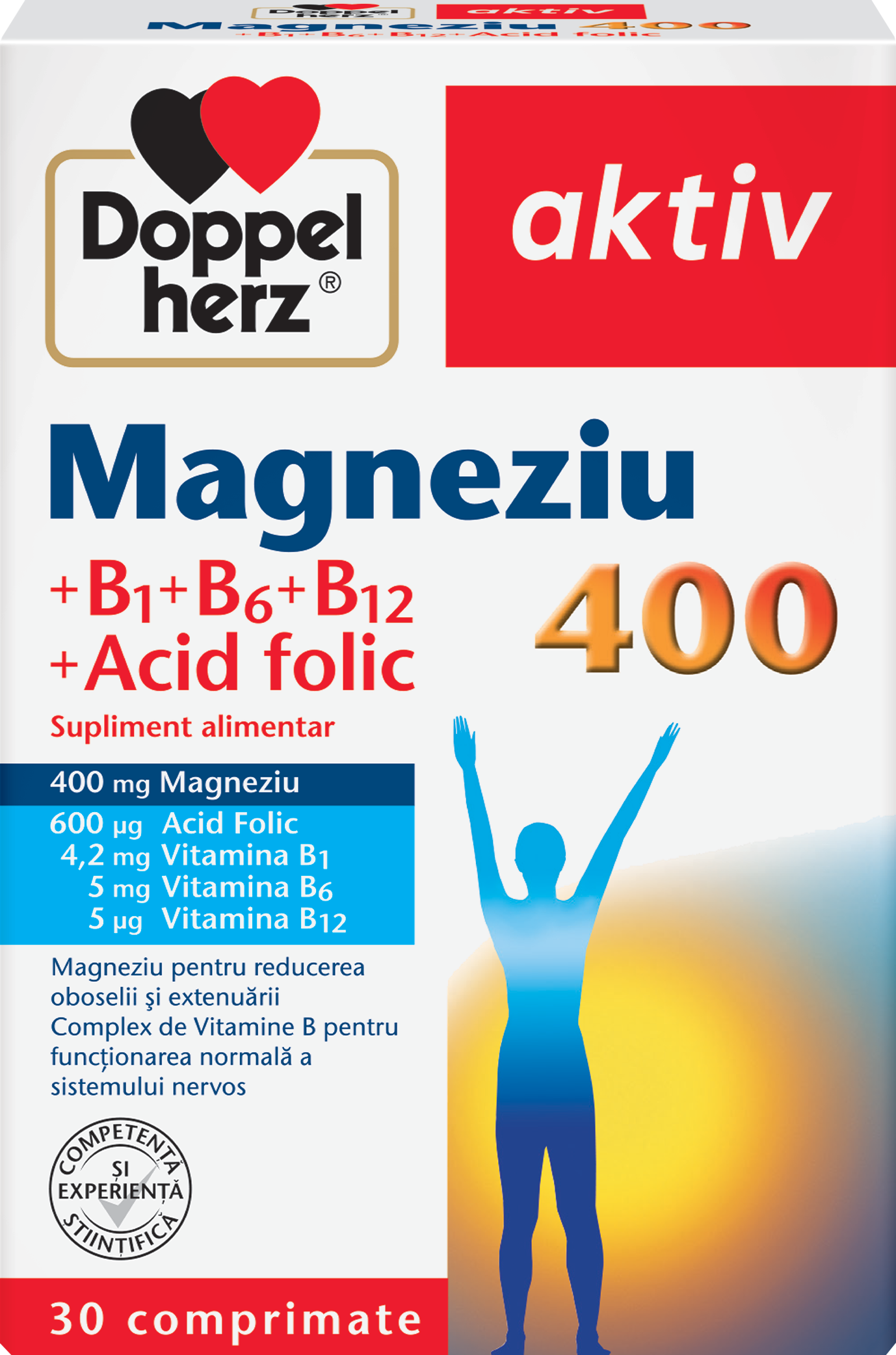 Aktiv Magneziu 400 +B1+B6+B12+Acid folic, 30+10 comprimate, DOPPELHERTZ