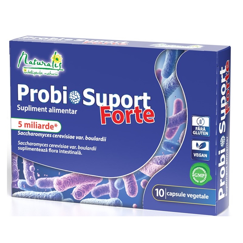 Naturalis ProbioSuport Forte este un supliment alimentar formulat cu Saccharomyces cerevisiae var. boulardii, o specie de drojdie cunoscuta pentru utilizarea sa in produse destinate echilibrului florei intestinale.