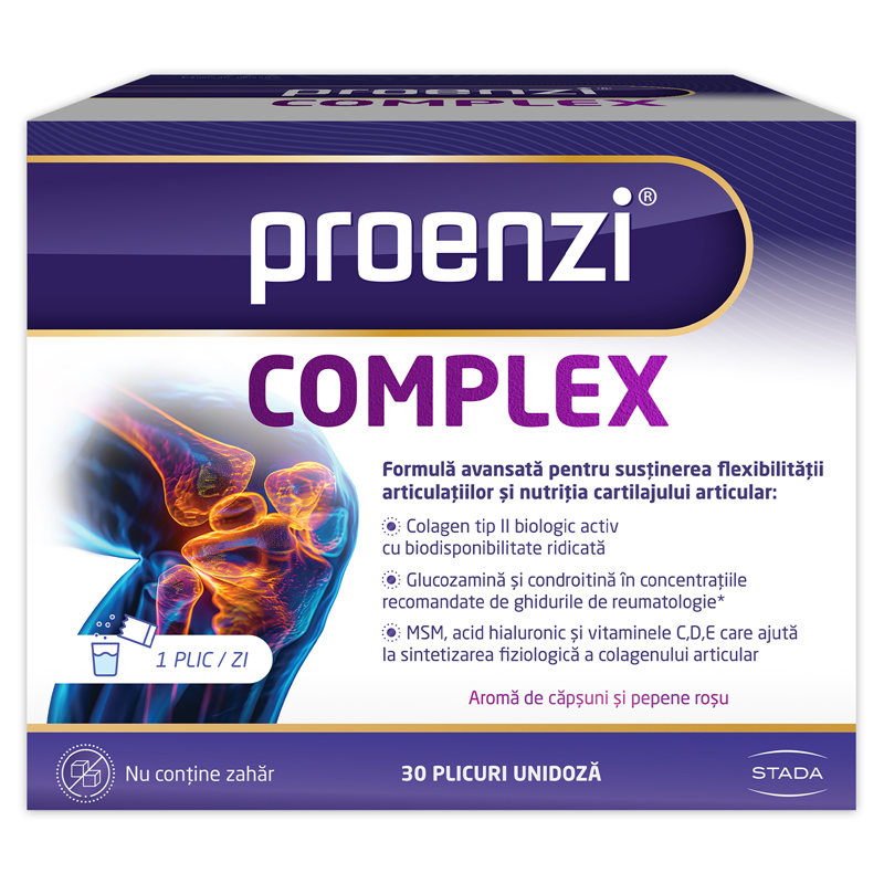 Proenzi Complex contine o formula avansata, sustinuta stiintific si conceputa pentru a sprijini flexibilitatea articulatiilor si nutritia cartilajului articular