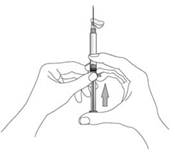1. Agitati bine seringa tinand-o in pozitie verticala, timp de minim 10 secunde pentru a asigura omogenizarea suspensiei. Tineti seringa cu varful in sus. Loviti seringa usor pentru ca toate bulele de aer sa se ridice inspre varful seringii.